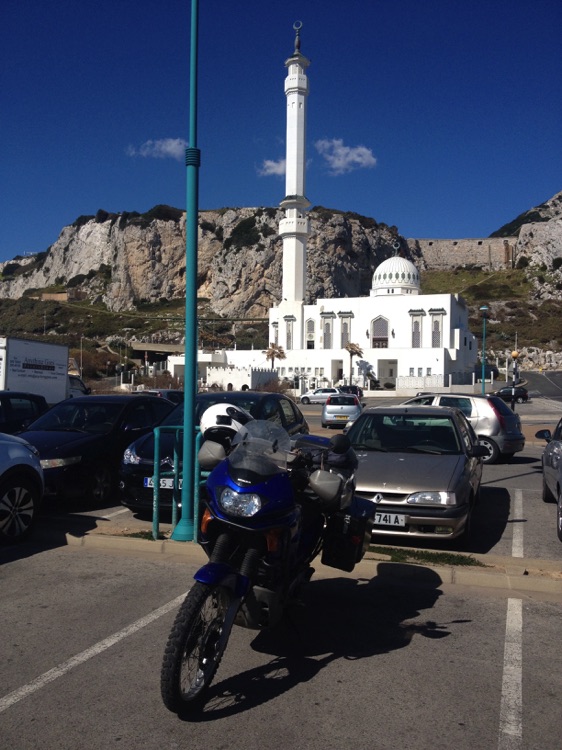 My Transalp was sailing on a cargo vessel for about 7 weeks (instead of the promised 4 weeks). In addition I had to pay 500€ extra to get it out from the Port of Valencia although I had paid all expenses already in Bangkok. Anyway, I was happy to get the bike and was ready on the road again after the shock was fixed. Spain is alovely country and the weather was nice. The only problem was when I decided to continue to Africa and too the northern route over the mountains to Granada. It was cold there. I had all clothes on but it wasn't enough. The temperature was just a few degrees Celsius. On the way to Algeciras I visited Gibraltar that was a very British place.